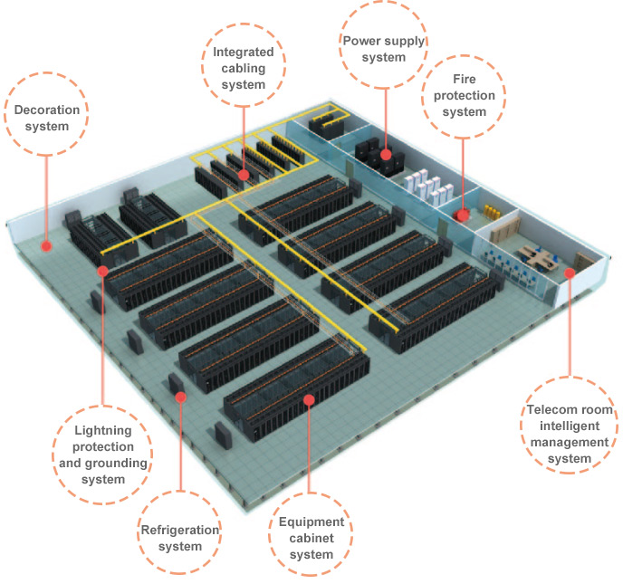Adopt closed cold/hot channel technology to improve heat dissipation efficiency, reduce energy consumption, and The PUE can reach a minimum of 1.3;